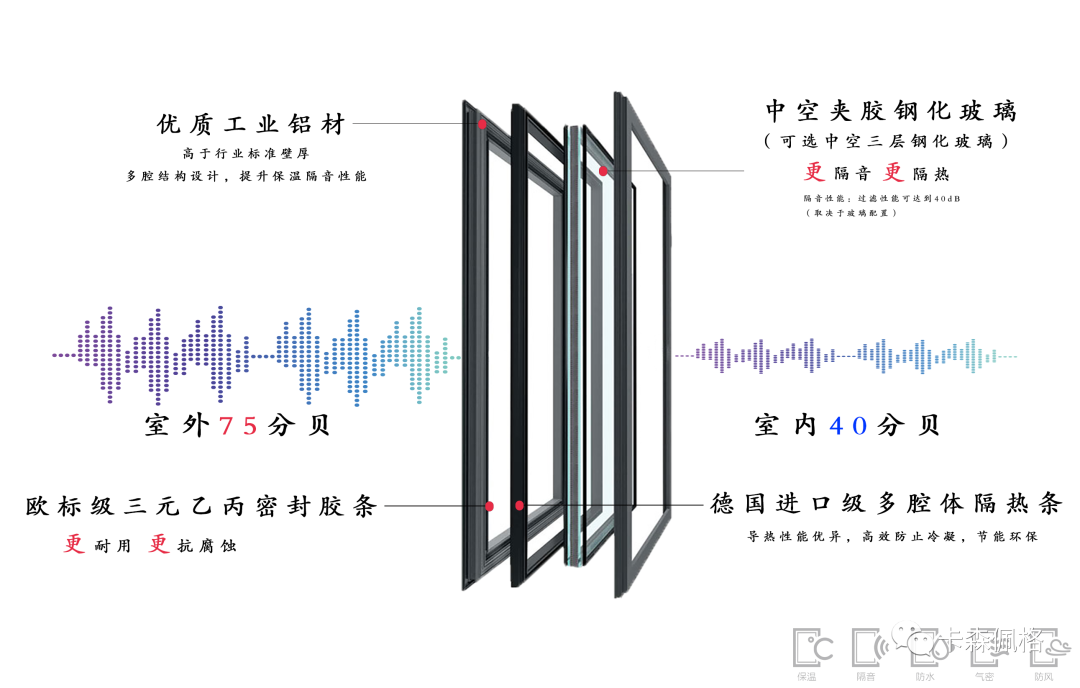 卡森佩格门窗隔音测试(110分贝以上),噪音被瞬间锁在室外,效果十分明显,原因是卡森佩格门窗巧妙的腔体结构加上欧标级三元乙丙密封胶条(奔驰S级以上车辆使用),中空双面钢化夹胶玻璃,使得隔音效果翻倍...